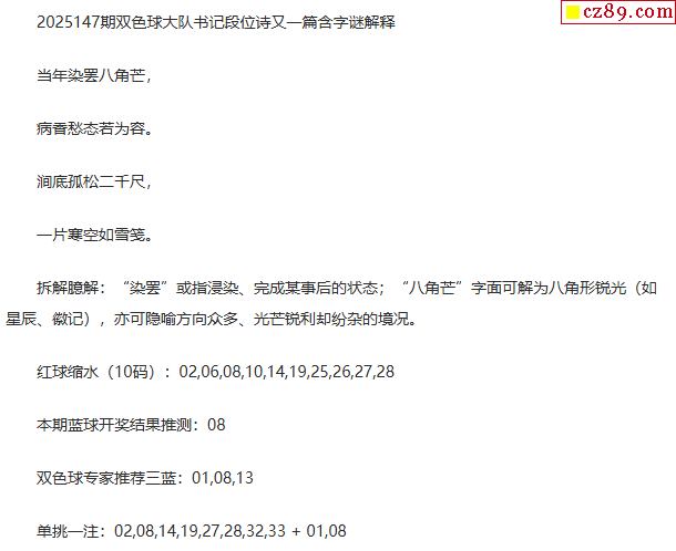 > 25年福彩双色球147期 大队书记段位诗另一篇